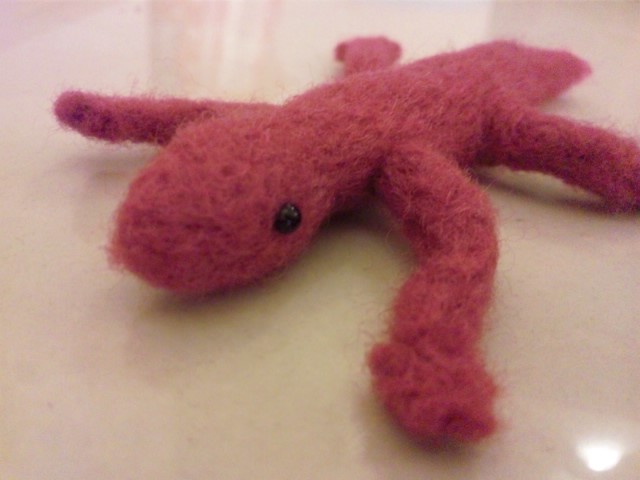 1時間のデモ制作、手持ちの羊毛で何を作ろうか、と考えた末。